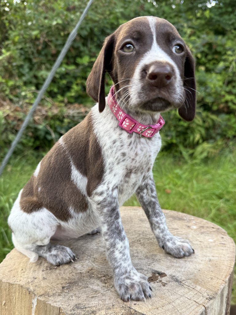 Our German Shorthaired Pointer puppies are bred for health, intelligence, agility, and companionship. These versatile dogs are perfect for families and fieldwork alike. Each puppy is raised with love in our home, ensuring they are well-socialized and ready to join your family.